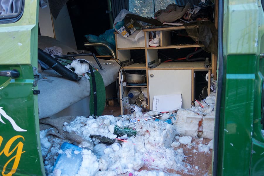 Nach so viel Arbeit beim Aufbau und so vielen Erlebnissen während der Reise, hat man schon eine gewisse Bindung und es ist nicht einfach nur ein Auto. Es war ein ziemlich irrealer Moment. Zumal in dem Wagen alles drin war, was ich besaß – Kleidung, Medikamente, die ich wegen einer chronischen Erkrankung dringend brauche, Fotoequipment, Festplatten mit allen Fotos der Reise, Dokumente usw.