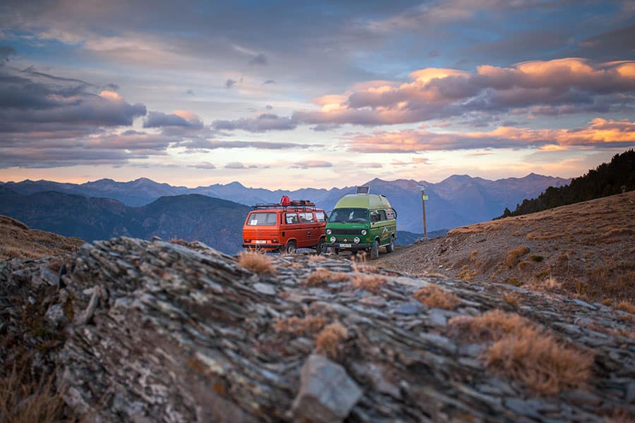 Ich war mit einem Bekannten für ein paar Tage in den Pyrenäen unterwegs. Bis zu besagtem Tage. An einem der höchsten Punkte der Pyrenäen parkte ich den Horst, zog die Handbremse und stieg aus, um ein paar Fotos zu machen. Nach ein paar Minuten schrie Marc plötzlich: „Reneeee! Der Horst ….“ Ich drehte mich um und sah, wie Horst sich langsam in Bewegung setzte.