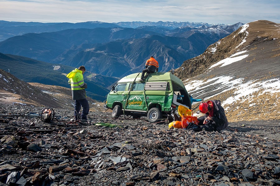 Zum Glück waren es die für mich relevantesten Dinge wie mein Laptop mit einem Teil der Fotos und meine notwendigen Medikamente. In den Wagen selbst haben wir uns nicht getraut. In der Hanglage mit grobem Geröll und einer Sicht bis ins Tal wäre das in der Situation ein unnötiges Risiko gewesen.
