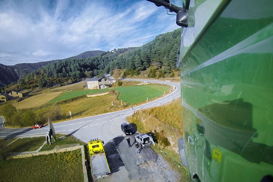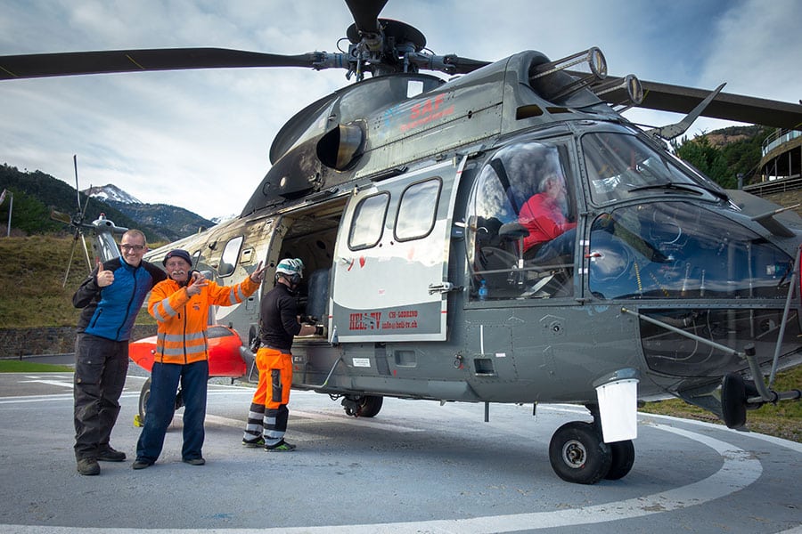 Was für einen „Flachländer“ ziemlich außergewöhnlich ist, ist hier in den Bergen normal. Hier werden Baumaterialien an den Haken genommen, Versorgungsgüter für abgelegene Hütten verladen usw. Das Fliegen ist günstiger als die langen Fahrstrecken durch die Berge. Auch gut betuchte Touristen aus Barcelona lassen sich gerne einfliegen. Neben Rettungstransporten hatte man auch bereits Erfahrungen mit Fahrzeug-Bergungen.