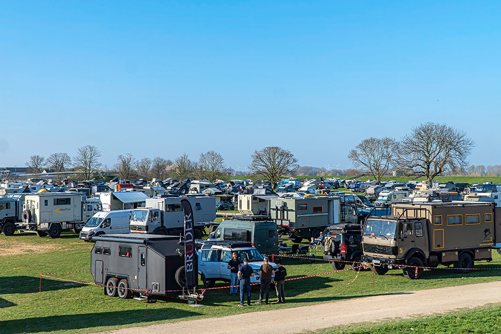 Schon am Donnerstag ist das Areal vor dem Messe- und Kongresszentrum in Kalkar gut gefüllt. Bereits am Abend vor der Messe rollen fast im Minutentakt geländegängige Fahrzeuge auf das Camping-Areal.