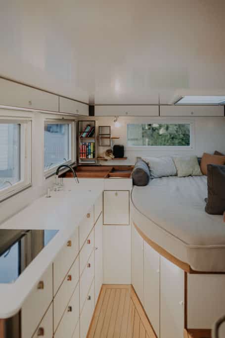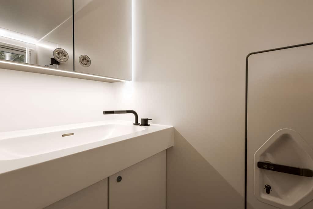 Den Wohlfühlfaktor steigern zudem die hochwertigen Echtglasfenster mit hundertprozentig vor Moskitos schützenden Rollos sowie die clever integrierte, indirekte Beleuchtung. Die Fenster kommen wahlweise von Wirebird, Outbound oder KCT. Gerne auch ein Eigenprodukt von mogX, wobei hierzu die Verglasung von KCT kommt.