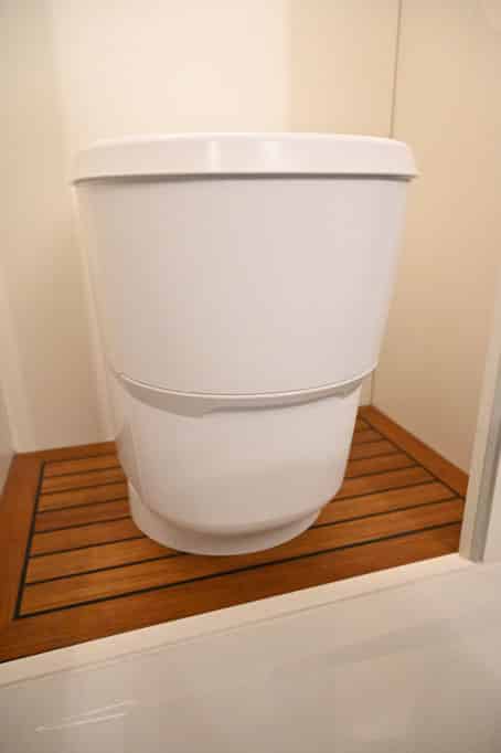 Serienmäßig ist im mogX eine Einschweißtoilette an Bord. Ob der enorme Plastikverbrauch Freunde nachhaltigen Reisens begeistert? Eher fraglich. Alternativ erhalten Interessenten eine Trockentrenntoilette.