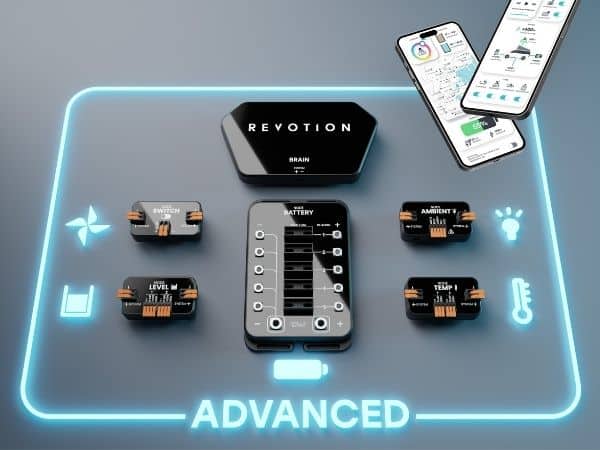 Behalte Deinen Camper immer digital im Blick mit dem Advanced Bundle von Revotion. Es beinhaltet alle Basismodule einmal und macht so jede Funktionalität Deines Reisemobils smart: von präzisen Tankfüllständen über die Batterieüberwachung bis hin zur Lichtsteuerung. Die Bedienung erfolgt bequem per Smartphone – wann und wo Du willst.