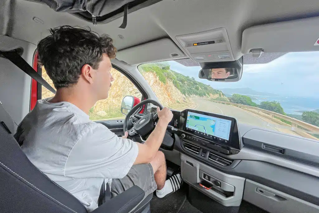Allerdings: Am Steuer möchte man das gerne vergessen. Zwar bleibt der typische Elektro-Punch aus, doch die Motorleistung genügt locker für einen Campervan. Vor allem aber bewegt sich der PHEV weitgehend leise, lediglich von einem sanften Surren untermalt. Erst jenseits der Autobahn-Richtgeschwindigkeit wird’s lauter, wenn die Reserven der 11,8 kWh kleinen Fahrbatterie erschöpft sind und der Verbrenner zugeschaltet wird – so ein stufenloses CVT-Getriebe regelt das Drehmoment eben über die Motordrehzahl. Gleichzeitig gelingt der Wechsel zwischen den verschiedenen Motoren ohne spürbare Verzögerung, das ist Ford gut gelungen. Dazu kommen zuverlässige Fahrerassistenzsysteme und die gut abgestimmte Einzelradaufhängung.