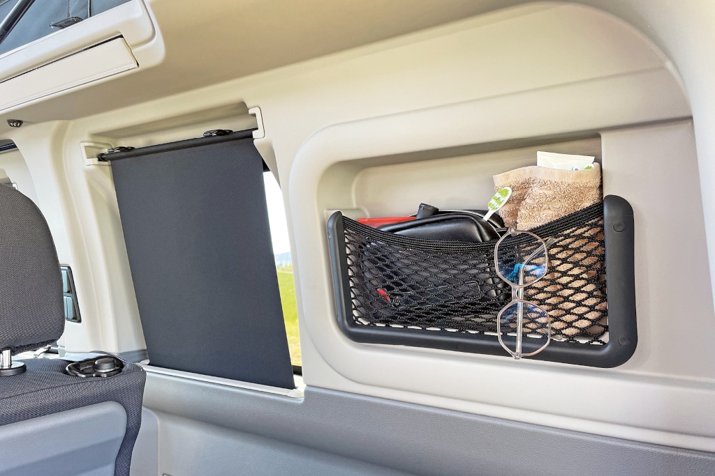 Dank beinahe automotivem Fertigungsstandard gibt es Verdunkelungsrollos und zusätzliche Ablagen.