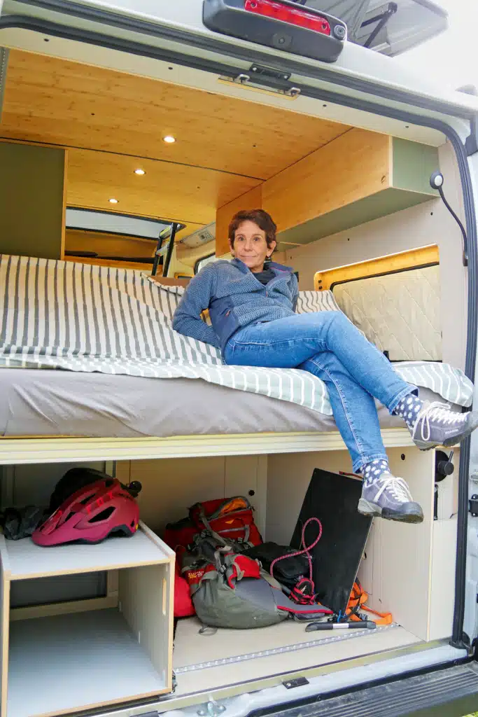 Da passt nicht nur viel Zeug rein, die Freestyle-Area ist auch durch eine Klappe von vorn oder von oben bei hochgeklapptem Lattenrost erreichbar. Also auch wenn die Heckklappen durch den Fahrradträger blockiert sind, kommt man noch an seine Kletterrucksäcke – wenn sie nicht in den Boxen sind.
