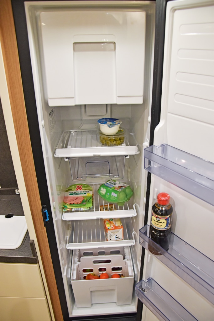 Allerdings sollte man auch die Stromreserven bedenken: 80 Amperestunden in AGM-Technik sind vergleichsweise mager. Im 138er ist die Null-Grad-Schublade auf jeden Fall praktisch. Schade hingegen, dass die Türfächer zu schmal sind für die übliche Weinflasche oder das Tetra Pak Milch.