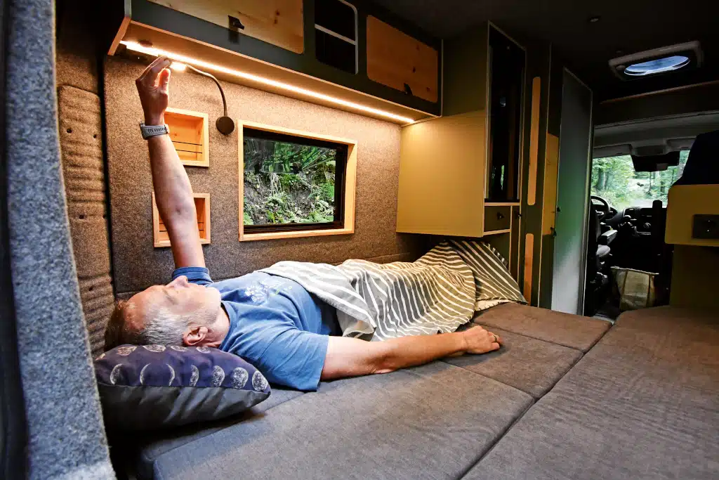 Kompakt und mit Längsbetten: SüdBadenVan treibt diese Idee auf die Spitze. Der Ausbau ist obendrein urgemütlich und neuerdings auch mit Bad erhältlich.