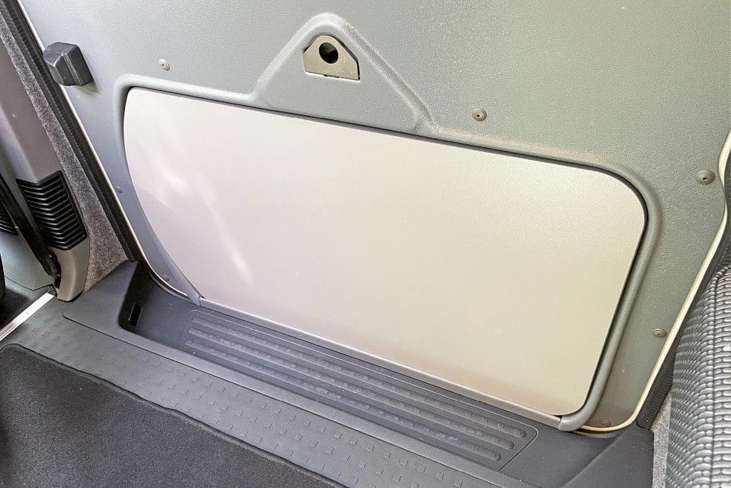 Da im Testwagen lediglich der Beifahrersitz über eine Drehkonsole verfügt, ist flächenmäßig eigentlich auch der kleine Tisch ausreichend – aber in der Schiebetür ist ein Campingtisch immer noch am sinnvollsten untergebracht. Und eine entsprechende Halterung, um Campingstühle an der Heckklappe zu transportieren, bietet Summermobil auf Wunsch auch.