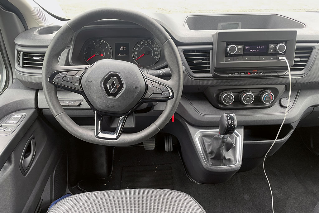 Deutlich weniger dynamisch, fast schon nüchtern geht es im Fahrerhaus zu. Zumindest wenn man es in der Konfiguration beim 1-DIN-Radio belässt. Auf der Haben-Seite steht dank haptischer (Lenkrad-)Tasten eine intuitive Bedienung. Smartphones lassen sich per Bluetooth und USB-Kabel verbinden, aber natürlich fehlt es etwas an grafischem Informationsgehalt, wenigstens für die Navigation.