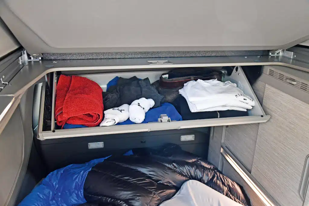 Die neue Kühlbox – von außen zugänglich und deutlich leiser – ist aber eine feine Sache. Für Vorräte oder auch Töpfe bleibt jedoch nur wenig Platz.