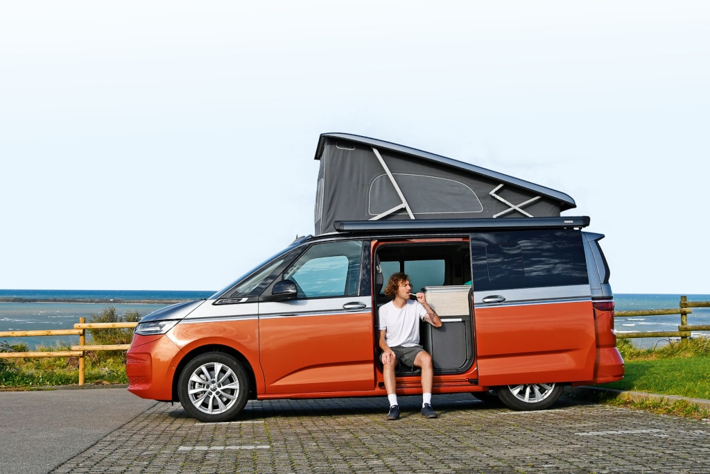 Ob und wann sich der Aufpreis vielleicht sogar amortisiert, hängt stark vom Fahrprofil ab und von äußeren Gegebenheiten. Im Idealfall kann der Campervan als Dienstwagen versteuert werden, denn dann werden nur 0,5 Prozent (statt ein Prozent) des Brutto-Listenpreises als geldwerter Vorteil veranschlagt. Die Grenzwerte, die das Finanzamt für die elektrische Mindestreichweite und für die CO2-Emission pro Kilometer festgelegt hat, hält der New California eHybrid 4Motion ein. Um langfristig Geld zu sparen, sollte man außerdem über die passende Ladeinfrastruktur verfügen: Wenn das Fahrzeug im Alltag genutzt, zum günstigen Hausstrom-Tarif oder mit Solarstrom aus dem Pufferspeicher geladen und die Pendelstrecke rein elektrisch bewältigt werden kann, fährt man – allein die laufenden Kosten betrachtet – günstiger als mit einem reinen Verbrenner.