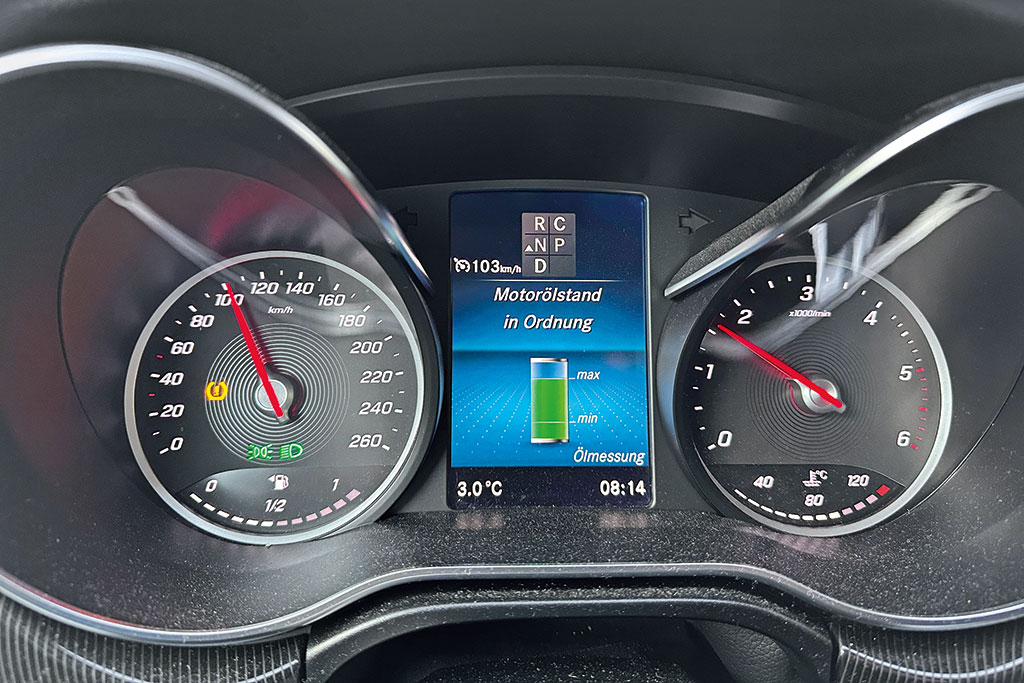 Dennoch heißt es aber, regelmäßig nachzuschauen – bevor sich der Motor meldet. Zum Glück geht das bei Mercedes ganz einfach und bequem über eine Anzeige, die man nur abrufen braucht.