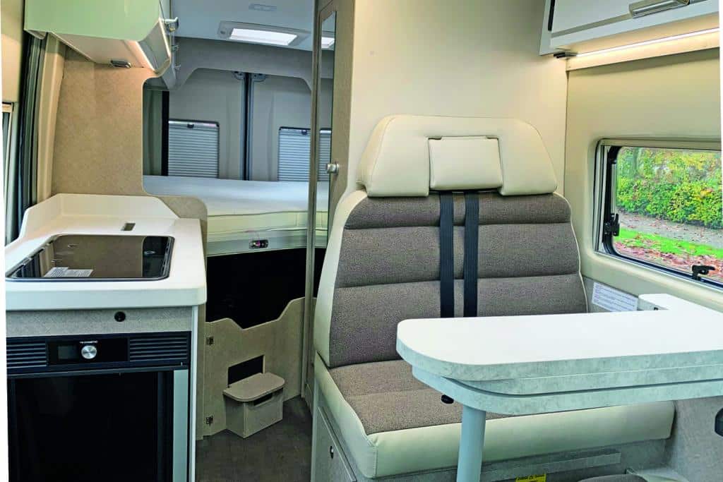 Industrie und Individualausbauer wissen um die Problematik und versuchen, mit ausgeklügelten Wohnraumlösungen den idealen Kompromiss zu finden. Trotzdem muss sich der Camper vor dem Kauf eines Vans Folgendes gut überlegen: Legt er mehr Wert auf große Betten oder lieber auf ein größeres Bad oder eine größere Küche oder doch lieber auf mehr Platz an der Sitzgruppe? Alles zusammen – das muss jedem klar sein – geht nicht. Die sprichwörtlich Eier legende Wollmilchsau, die im kompakten Van Platz wie im ausgewachsenen Wohnmobilen bietet, gibt es nicht.