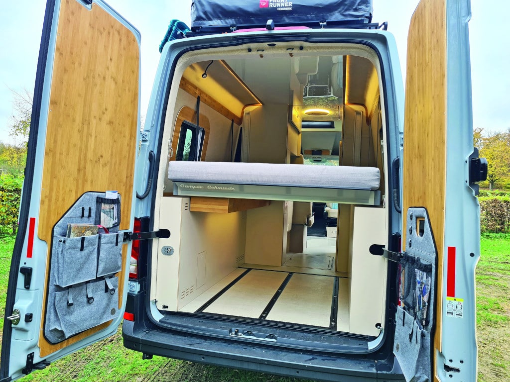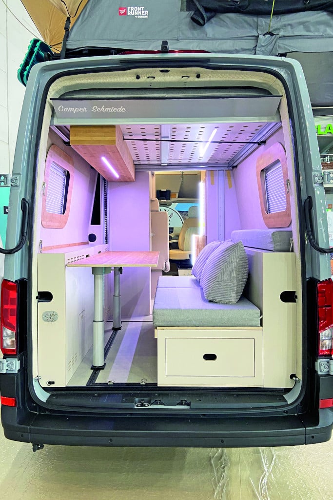 In Mönchengladbach am Niederrhein schmiedet das zwölfköpfige Team der Camper Schmiede seit 2020 Individualausbauten und versucht dabei, jeden Wunsch bei der Gestaltung des jeweiligen Traum-Campervans zu erfüllen. Was bei ihnen in Sachen Individualausbau so alles möglich ist, zeigt ein Campervan in besonderem Look, der mit ausgefallenen Details, auffälligen Farben und einer coolen Erfindung aufwartet.