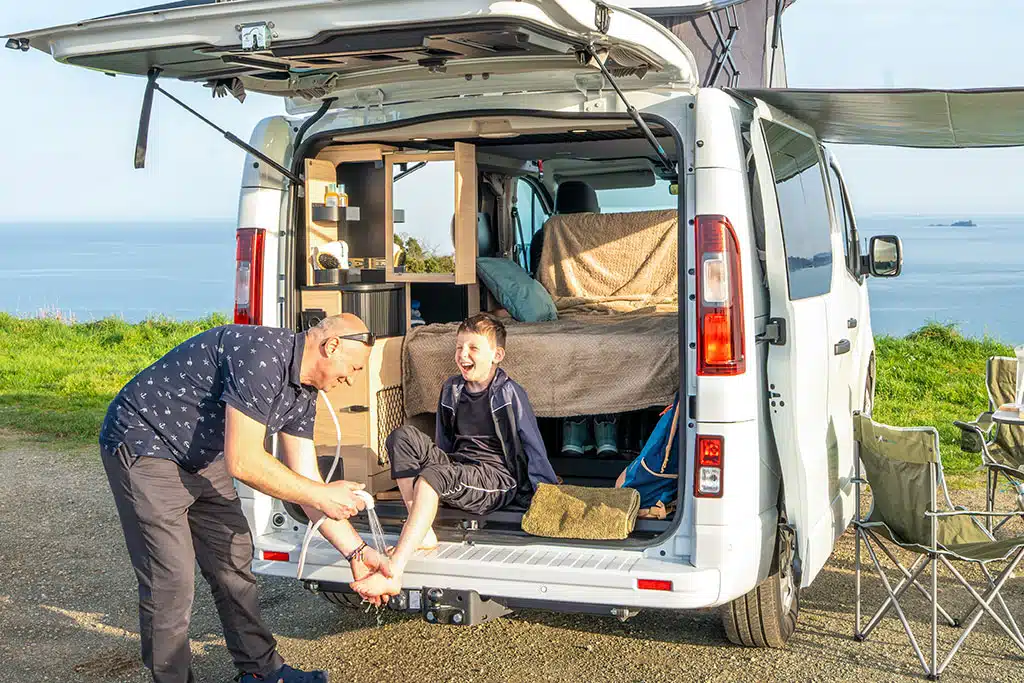 Der Frischwassertank fasst nun ganze 85 Liter, der Abwassertank 42,5 Liter. Hinzu kommen 400 Watt Solarpanels auf dem Dach und ein 1.200-Watt-Wechselrichter mit externer Steckdose.