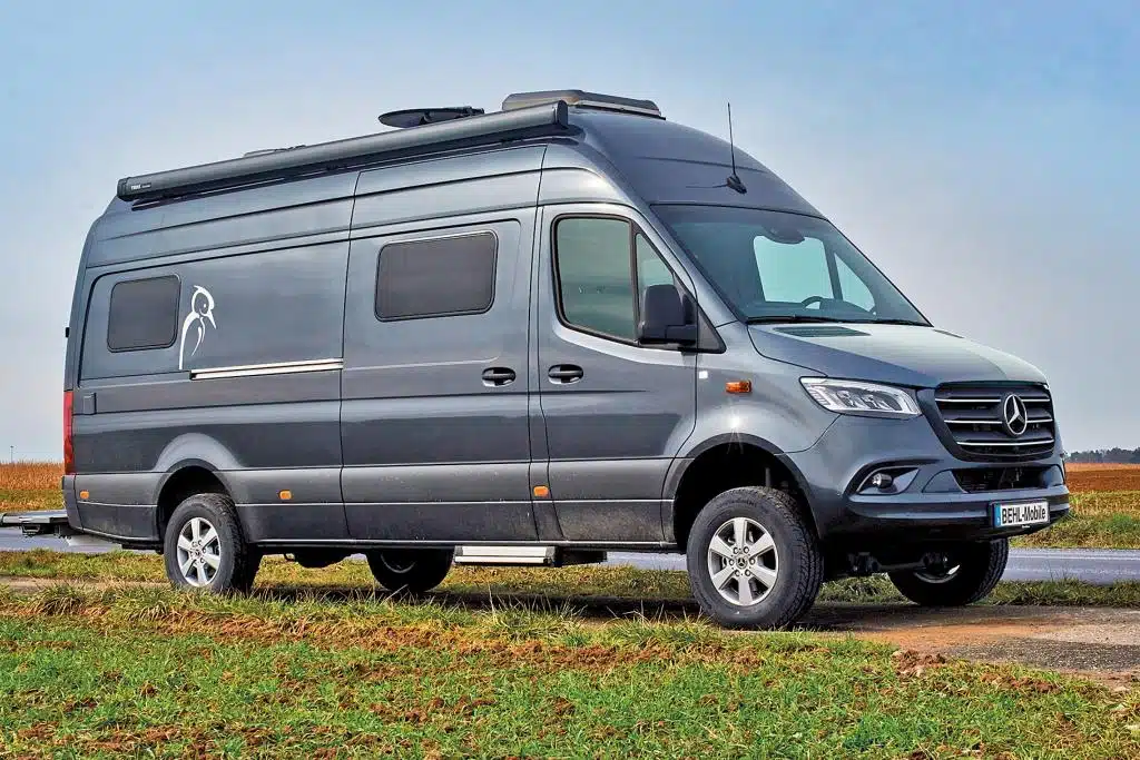 Im unterfränkischen Marktheidenfeld baut Behl Mobile Kastenwagen, die genau auf die Reiseanforderungen des jeweiligen Kunden angepasst werden. Der 6,97 Meter lange Mercedes-Benz Sprinter macht da keine Ausnahme – er wurde auch schon als Renntransporter mit Platz für zwei Motorräder gebaut. Für die Komfort-Version mit Superhochdach sieht der Behl-Entwurf einen doppelten Boden vor, der über eine Warmwasser-Fußbodenheizung erwärmt wird. Auch bei der Isolierung und beim Möbelbau zeigt sich der Anspruch des Herstellers. Die Küche ist mit einem Backofen ausgestattet. Der 90-Liter-Kühlschrank befindet sich auf Arbeitshöhe und daneben ein praktischer Apothekerschrank. Das Bad verfügt über ein Klappwaschbecken und über eine Duschwanne aus Edelstahl. Im Heck gibt es ein 160 Zentimeter breites Längs-Doppelbett, das auf 185 bis 200 Zentimeter Länge kommt.
