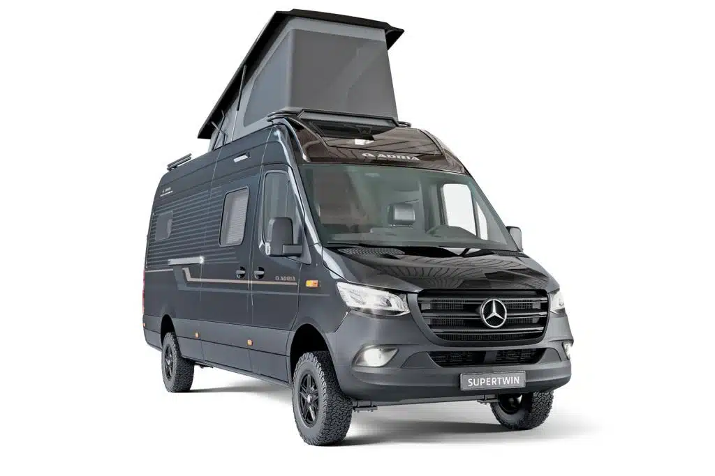 Aus dem Supertwin wird eine Baureihe: Wie schon zum Launch des knapp sechs Meter langen Supertwin 4×4 600 SPB angekündigt, stellt Adria seinem Top-Modell auf Mercedes-Benz Sprinter 4×4 eine längere 700er-Version zur Seite. Statt fest verbautem Querbett kommt hier ein elektrisches Hubbett zum Einsatz, das mehr Flexibilität beim Transport von Sportgepäck verspricht und dank Längsanordnung auch mehr Schlafkomfort. Ansonsten bleibt es beim Konzept „all inclusive“: Der 190-PS-Motor samt Allrad und Automatik, sämtliche Assistenzsysteme, die AT-Bereifung, eine Lithium-Aufbaubatterie und sogar die Alde-Warmwasserheizung sind serienmäßig an Bord. Wer kein Aufstelldach konfiguriert, erhält einen Dachgepäckträger. Exklusiv bei Adria gibt es außerdem ein Panoramadach für den Sprinter. Der Grundpreis liegt bei 130.690 Euro.