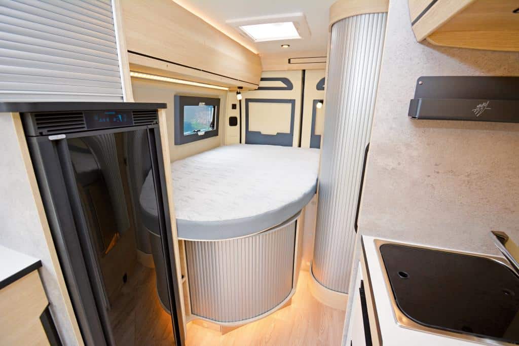 Unter den neuen Sondermodellen stellt Rapido die Jubiläumsausführung des Rapido V62 vor. Besonderheit des 6,36 Meter langen Kastenwagens auf Basis des Fiat Ducato L4H2 ist das französische Bett neben einem Heck-Längsbad. Davor stehen sich L-Küche und Kühlschrank gegenüber, und die Halbdinette im Bug erweitert Rapido um einen Seitensitz an der Schiebetür.