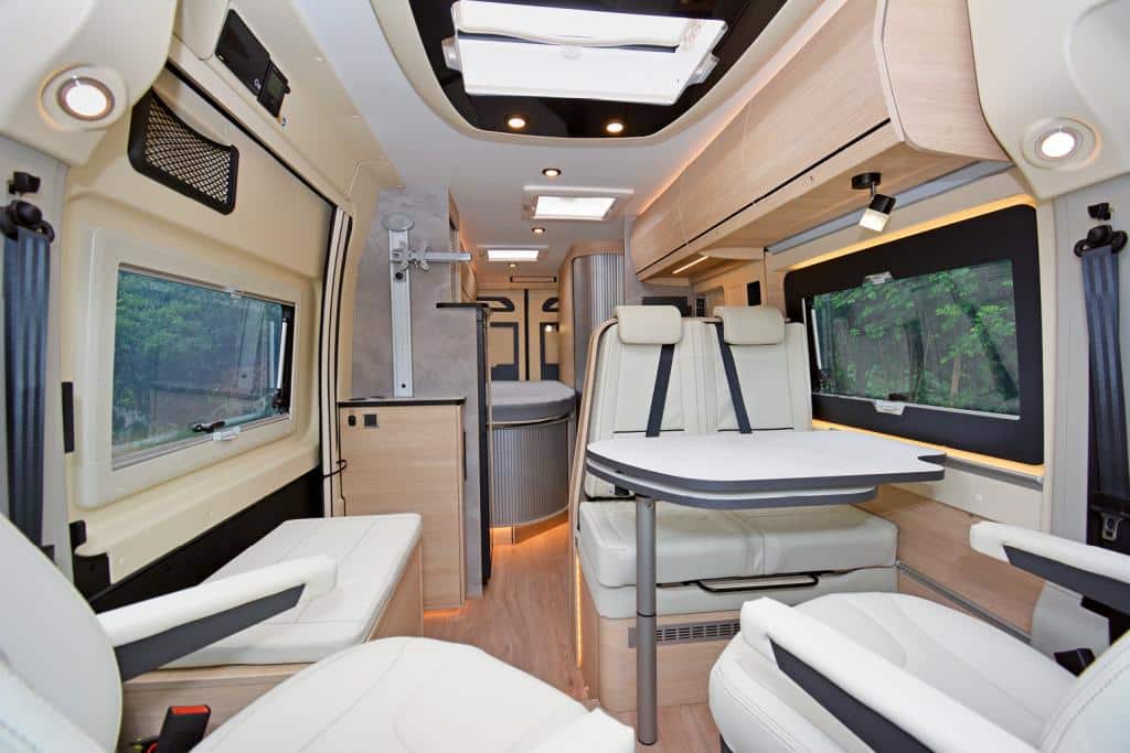 Das einsame Fenster der Sitzgruppe trügt: Innen ist der Rapido V62 R65 dank Panorama-Dachfenster, Fenster über den Vordersitzen und weiteren Fenstern schön hell und freundlich.