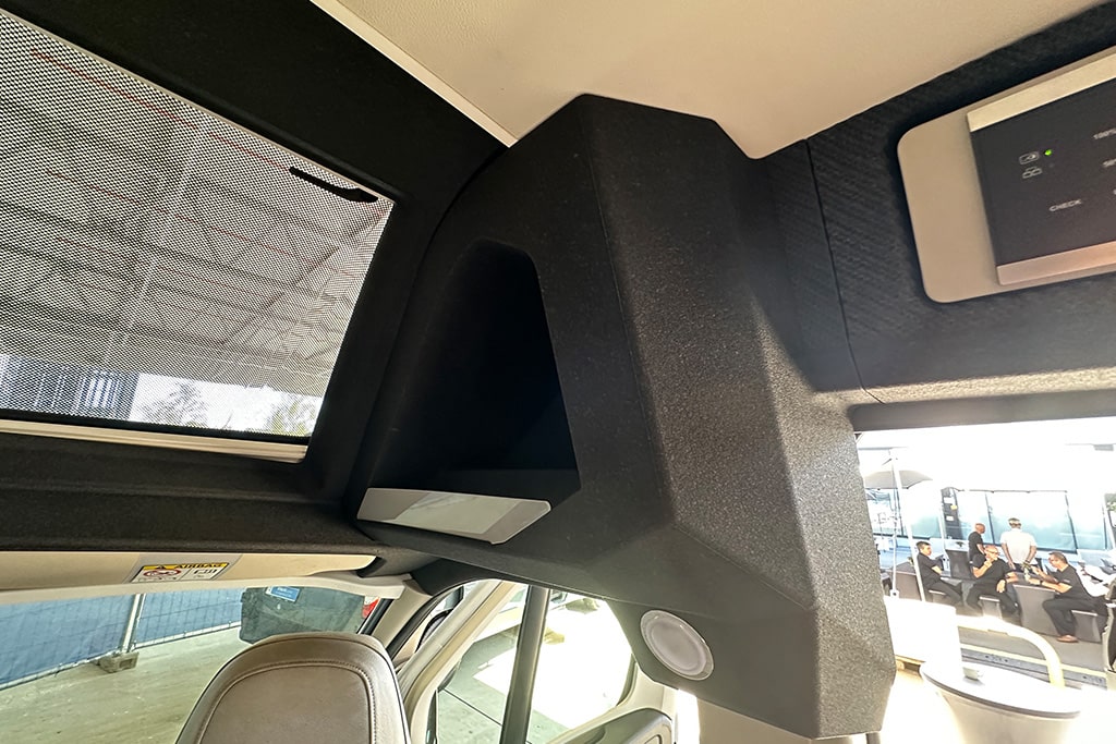 Decke und Boden werden in einem Stück gefertigt und passen sich exakt der Fahrzeugstruktur an – das Ergebnis: eine gleichmäßige Dämmung im gesamten Innenraum. Die Wandverkleidung reduziert Außengeräusche spürbar um bis zu 3 dB(A). Einzig die etwas massig wirkenden Seitenelemente fallen auf.