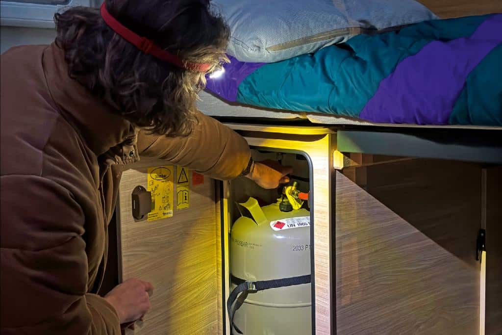 Zwar geht’s auch ohne, aber in wichtigen Momenten wird’s schnell mühsam – etwa beim nächtlichen Gasflaschentausch, beim Einladen der Fahrräder oder der Suche nach etwas in der Heckgarage. Auch auf dem dunklen Weg über den Campingplatz ist eine Stirnlampe nahezu unverzichtbar: Anders als Taschenlampen leuchten Stirnlampen immer dorthin, wo man hinschaut – und lassen beide Hände frei.