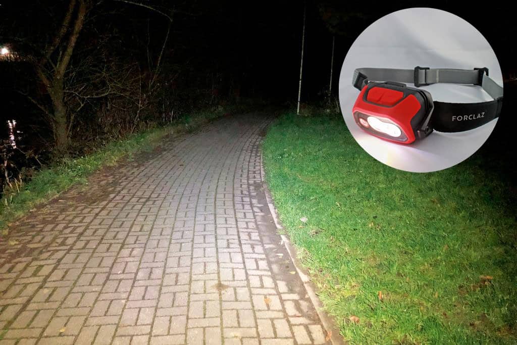 Decathlon stattet die Forclaz HL900 USB V3 mit sechs Leuchtmodi aus: Eco, Normal, Voll, Boost (600 Lumen für 60 Sekunden), Blinklicht und Rotlicht. Damit die Bedienung trotz der vielen Funktionen nicht kompliziert wird, verfügt die Lampe über zwei Tasten (+ und –). Das Blinklicht aktiviert man durch langes Drücken der Plus-Taste, die Transportsperre durch gleichzeitiges Drücken beider Tasten. Die Ausleuchtzone ist fest, vor allem seitlich sehr breit. Die Lichttemperatur ist – außer im Boost-Modus – etwas wärmer als bei den anderen Lampen. Dadurch wirkt das Licht zunächst schwächer, ist es aber nicht.