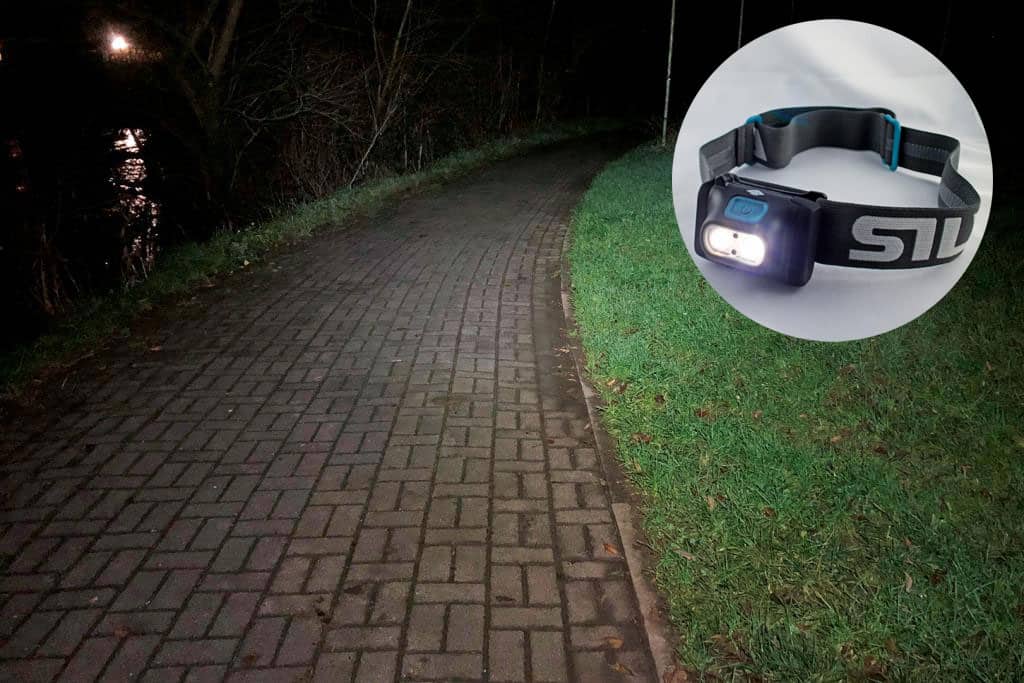 Die Silva-Lampe hat eine feste, im Vergleich recht schwache Ausleuchtzone. Dafür überzeugt sie beim Tragen: Das breite, innen gummierte Kopfband lässt sich über eine einzelne Schnalle auch beim Tragen einstellen. Der Lampenkopf ist ungepolstert, was aber nicht stört – die Lampe sitzt bequem und drückt nicht. Mit 77 Gramm ist sie angenehm leicht, und mit IPX5 immerhin noch ausreichend gegen Regen geschützt.