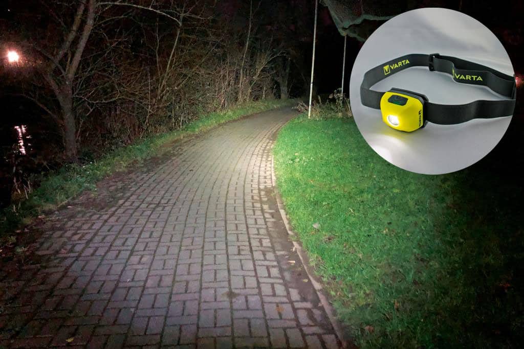 Die Varta H30R Wireless Pro reiht sich mit ihrem Funktionsumfang und den Leuchtmodi im guten Mittelfeld ein. Sie bietet drei Leuchtmodi (Spot-, Flutlicht und kombiniert, alle dimmbar) sowie Rotlicht. Die Ausleuchtzone besteht aus einem festen, ausreichend großen Bereich mit einem sehr hellen Spot und einem ebenfalls hellen Randbereich. Der Lithium-Polymer-Akku (1.800 mAh) verspricht mehr als fünf Stunden Laufzeit, doch auch nach sieben Stunden Betrieb ist der Akku laut Batterieanzeige (rot blinkend: <10 %; blau blinkend: ladend; blau leuchtend: 100 %) noch nicht bei unter zehn Prozent.