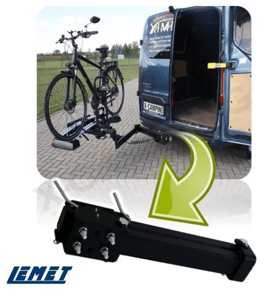 Das Schwenkmodul SWINGY von LEMET ist eine kostengünstige Lösung für den Fahrradtransport an Kastenwagen und ermöglicht auch bei montiertem Träger einen bequemen Zugang zum Heck.