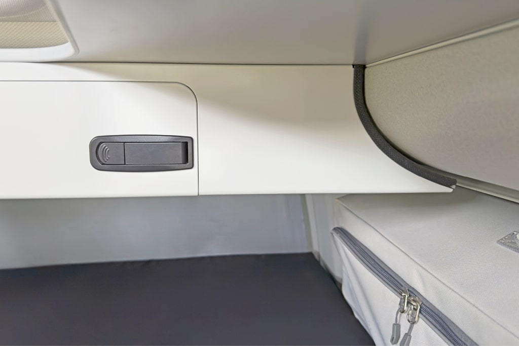 Wichtig ist nicht nur, wie viel Stauraum der Campingbus bietet – das Gepäck sollte auch komfortabel, manches möglichst vom Fahrzeuginneren aus erreichbar sein. Zum Beispiel Unterwäsche oder der Pyjama. Eine sehr gute Lösung dafür bietet das schweizerische Unternehmen CamperX für den VW California Beach der Generationen T5 bis T6.1 in Form eines Dachstaukastens. Aus 130 mal 400 mal 120 Zentimetern ergeben sich über 62 Liter Volumen. Die robuste Konstruktion aus pulverbeschichtetem Aluminium kommt fertig montiert und mit wertigen Verschlüssen. Zur Montage müssen vier kleine Schrauben in das fixe Fußteil des Bettgestells geschraubt werden, wofür Bohrschablonen beiliegen.
