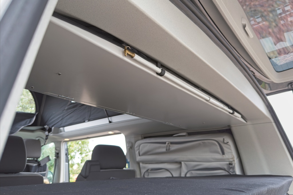 Wer die Lösung in seinem T5, T6 oder T6.1 nachbauen möchte, findet ein entsprechendes Verkleidungsteil für die Schiebetür inklusive Tisch mit höhenverstellbaren Beinen bei HideMyTable.