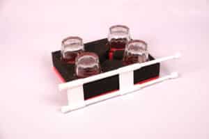 Das Konzept bietet: Exakt passende Schaumstoffeinlagen sorgen für sicheren Halt von Bechern, Gläsern und Porzellan – klapperfrei und bruchsicher. Die Module bestehen aus lebensmittelechtem Kunststoff, lassen sich gut kombinieren und teilweise stapeln. Auch Gläser aus echtem Kristall oder Porzellan können so problemlos transportiert werden.