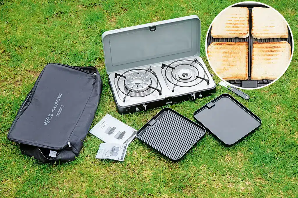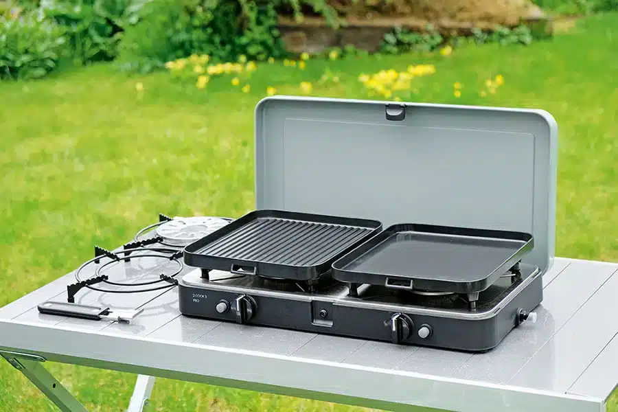 Als guter Allrounder bietet der Dometic 2 Cook 3 Pro Deluxe einen sehr guten Kompromiss zwischen Größe und Grillergebnis dank zwei separater und gleichzeitig nutzbarer Grillplatten. Das kompakteste Modell im Test ist zwar etwas schwächer in der Leistung und lässt richtiges Grill-Feeling ein wenig vermissen, ist dagegen aber unkompliziert in der Handhabung, preisgünstig, schick und unschlagbar platzsparend – und daher eine klare Empfehlung auch bei mehreren Personen am Tisch. Und auch wenn es aufgrund des fehlenden Deckels etwas länger dauert: An Zeit sollte es beim Camping eigentlich nicht mangeln.