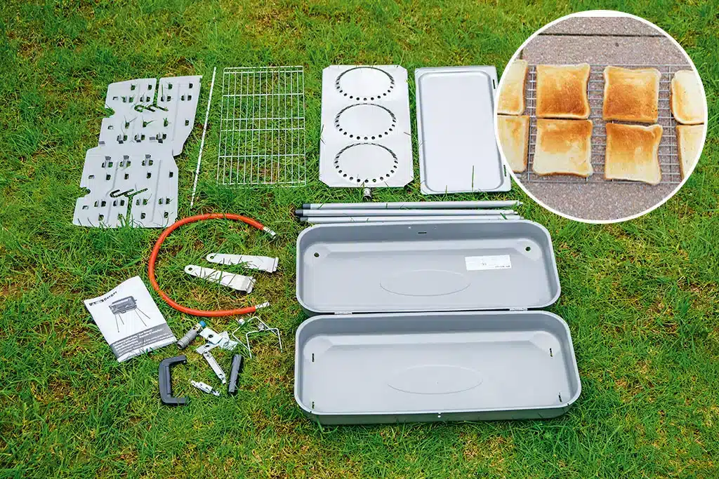 Die Testbriefe zeigen neben grundsätzlichen Modellinformationen die für den Campingalltag relevanten Zahlen, Daten und Fakten. Für das entsprechende Grillerlebnis und -ergebnis entscheidend sind folgende Faktoren besonders wichtig: die erzielte Grilltemperatur, die real nutzbare Grillfläche und die Hitzeverteilung auf dem Rost. Um Letzteres zu testen, haben sich die Tester einer simplen, aber effektiven und aussagekräftigen Methode bedient. Mittels Toastbrot-Scheiben ließ sich sehr gut darstellen, wie sich die Hitze auf der Grillfläche verteilt und ob ein gleichmäßiges oder ungleichmäßiges Grillergebnis erzielt wird.