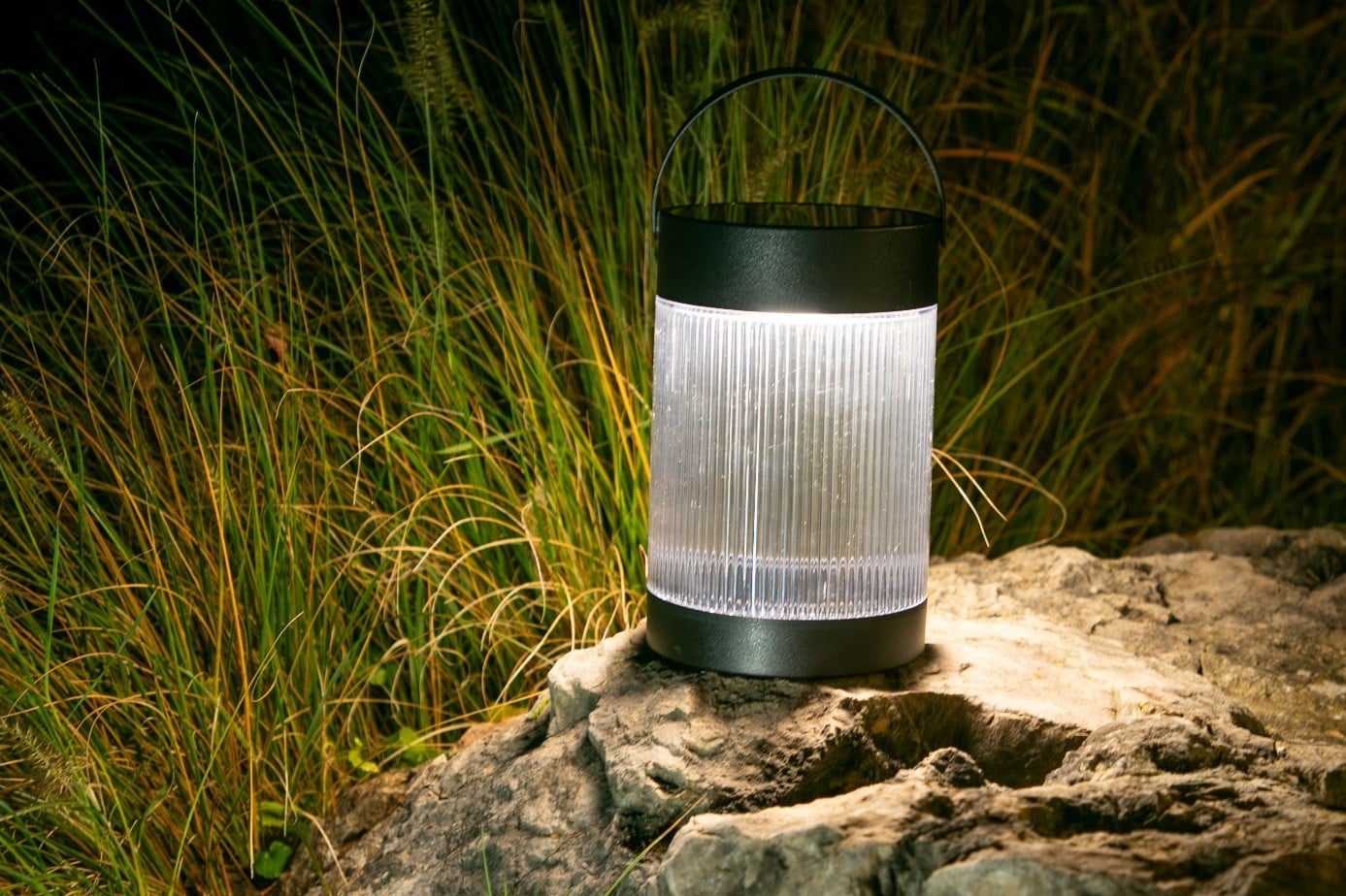 Die Nordlux Couper Solar ist tragbar und besteht aus robustem Kunststoff. In der Kombination aus schwarzem Deckel, schwarzem Sockel und glasähnlichem Korpus erscheint sie stilvoll klassisch und lässt mit ihren klaren Linien das Herz von Ästheten mit einer Schwäche für Bauhaus höherschlagen. Kein Wunder, denn sie wurde vom dänischen Designerduo Says Who entworfen. Die Lampe wird tagsüber durch Sonnenlicht aufgeladen, das sie in der Dunkelheit abgibt. In einer alternativen Version kann die Leuchte auch mit Akkus betrieben und am Stromnetz wieder aufgeladen werden.