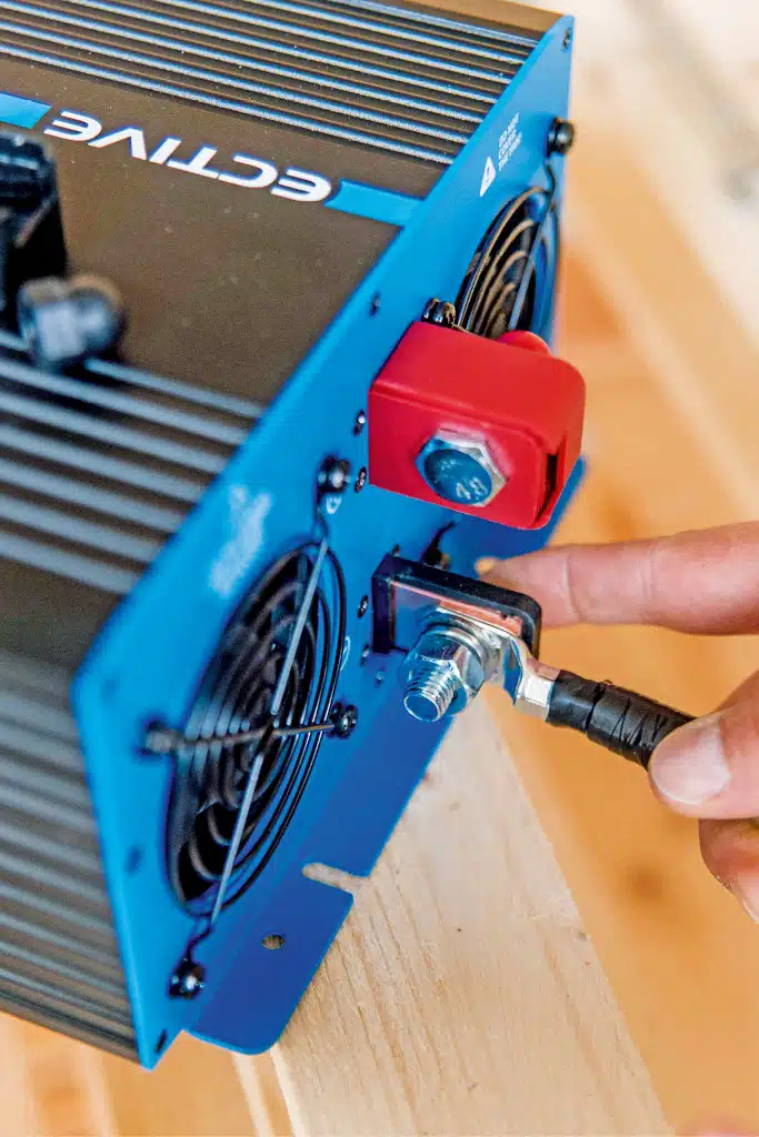 Tipp der Redaktion für die Installation eines Wechselrichters der 2.000-Watt-Klasse im Camper: der optimale Kabelquerschnitt • bis 1 m Kabellänge: 50 mm² • bis 2,5 m Kabellänge: 70 mm²