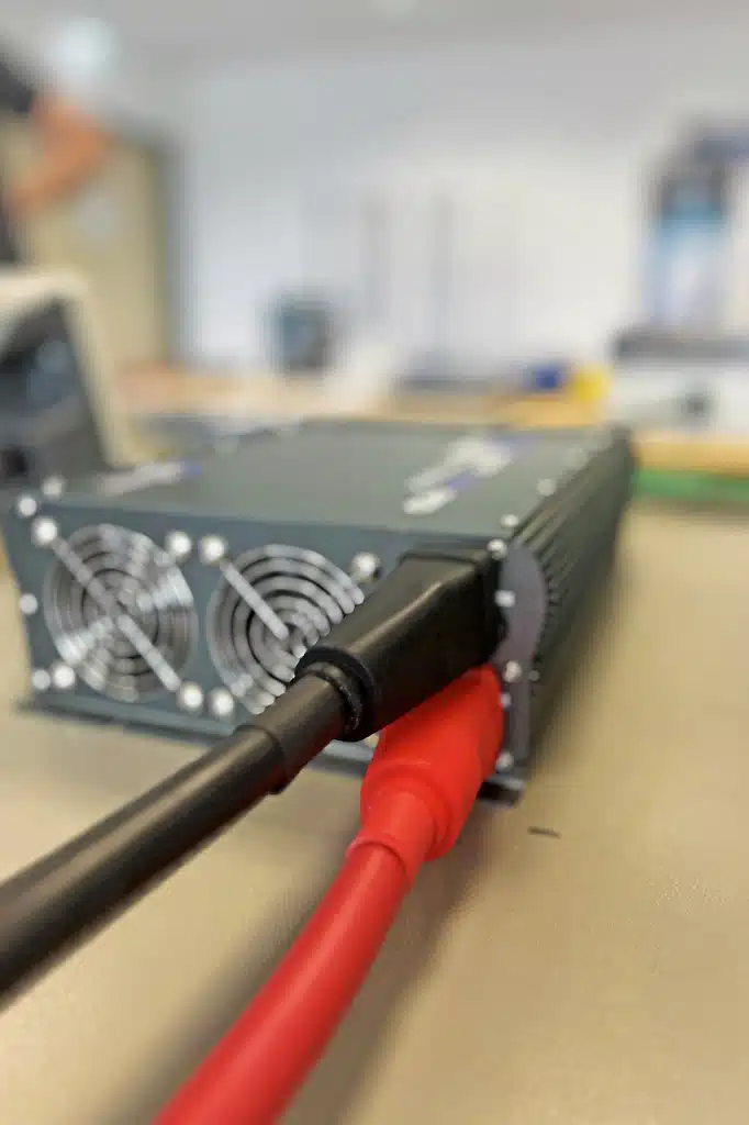 Ergo: Wer einen Wechselrichter in einen Camper installiert, muss sich zwingend immer an einem nach oben korrigierten Kabelquerschnitt orientieren.