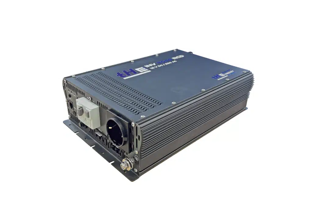 Ten Haaft kann nicht nur funktionelle Sat-Anlagen, Internet und TVs – unter dem Label tHEnergy entstehen aktuell neue Elektronik- Artikel für Camper. Der brandneue tHE INV 2000 RCD ist quasi der neueste Wurf des deutschen Entwicklungsteams. Geräte mit 1.000 und 3.600 Watt bietet tHE ebenfalls an. Wie der Name vermuten lässt, sind Netzvorrangschaltung (INV) und FI-Schutzschalter (RCD Typ B) integriert, seine Nennleistung liegt bei 2.000 Watt. Preislich spielt der tHE mit 869 Euro in der Oberliga im Testfeld, ebenso mit Blick auf Ausstattung und Extras. Mit 3,85 Kilogramm Gewicht und Maßen von 345 mal 230 mal 90 Millimetern ist der tHE nicht nur das leichteste, sondern auch das kompakteste Gerät im Test.