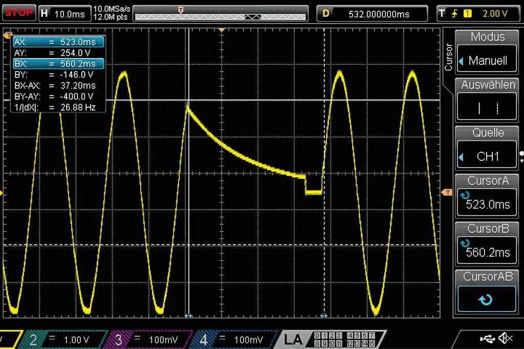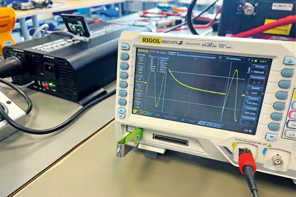 Netzvorrangschaltung: Bei allen Geräten, die dieses Feature bieten, ermittelte das Team die Umschaltzeiten von Land- auf Wechselrichterstrom – und umgekehrt – mithilfe des Digitalspeicheroszilloskops Rigol MSO1074 auf die Millisekunde genau. >10 bis >15 ms gilt als zu lang für einen unterbrechungsfreien Computerbetrieb, sollte dieser nicht durch einen Akku gepuffert sein. Der Tester für die RCD (FI-Schutzschalter) war ein Benning-Installationsprüfer IT130, Wirk- und Scheinleistung ermittelte ein Shelly PRO3EM. Ein Teil der Testgeräte wurden der Redaktion von der Firma Ten Haaft zur Verfügung gestellt.