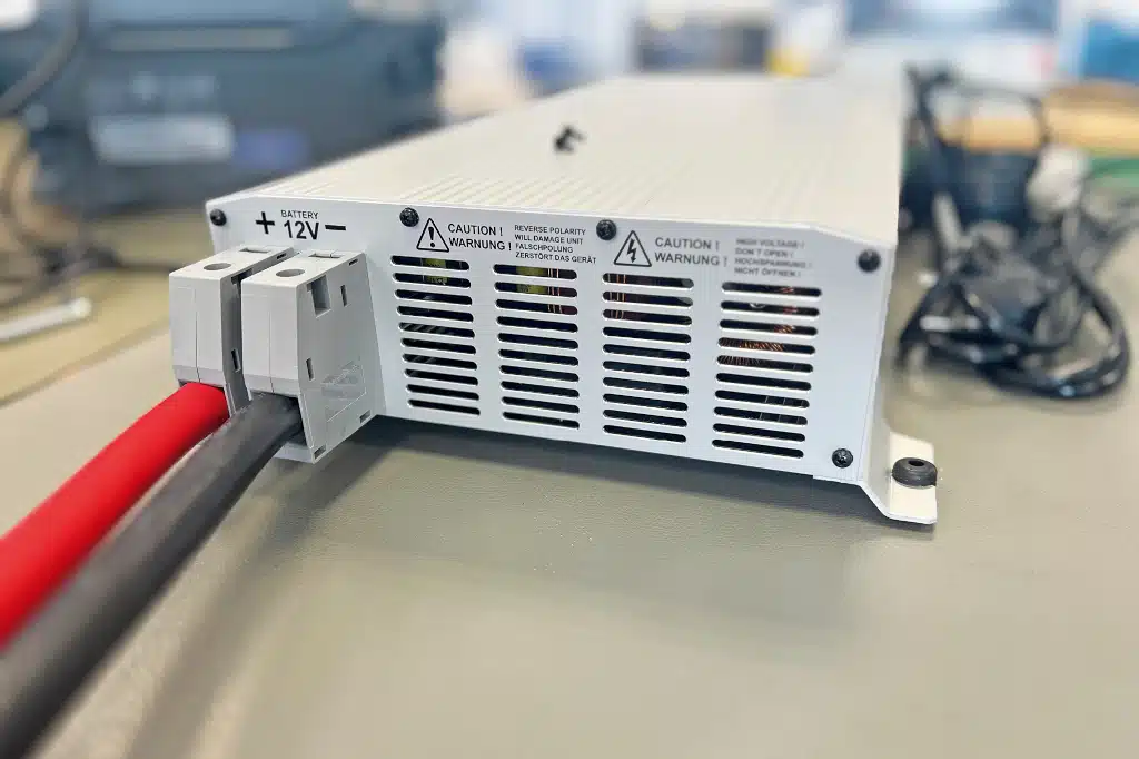 Der Sinus-Wechselrichter arbeitet mit dem von der Bordbatterie kommenden 12-V-Strom.