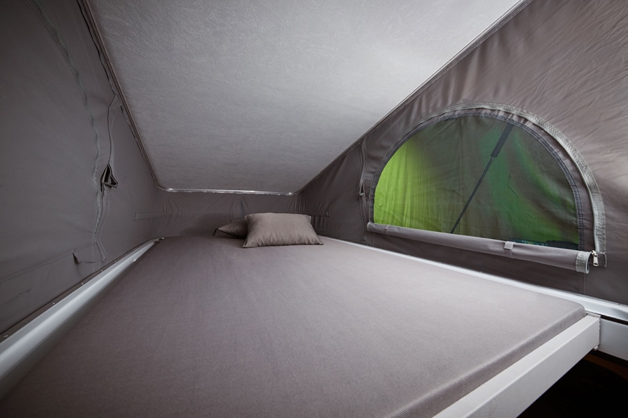 Ein bisschen anders ist er dann aber doch: Das Hauptbett befindet sich im Aufstelldach von SCA, nur wer bei der Bestellung die Option „Holiday Paket“ wählt, bekommt eine Klappsitzbank im Fahrzeugfond und damit zwei weitere Schlafplätze.