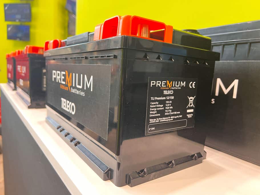 Der italienische Hersteller Teleco bietet ein riesiges Sortiment an Camper-Zubehör an. Von der Sat- über die Klimaanlage, von Wechselrichtern bis zu Bordbatterien. Preislich sind die Akkus für Camper im mittleren bis oberen Preissegment angesiedelt. Die 150-Ah-Batterie aus der Premium-Serie soll schlanke 14,5 Kilogramm wieden, kommt im DIN-Gehäuse und kostet 1.350 Euro.