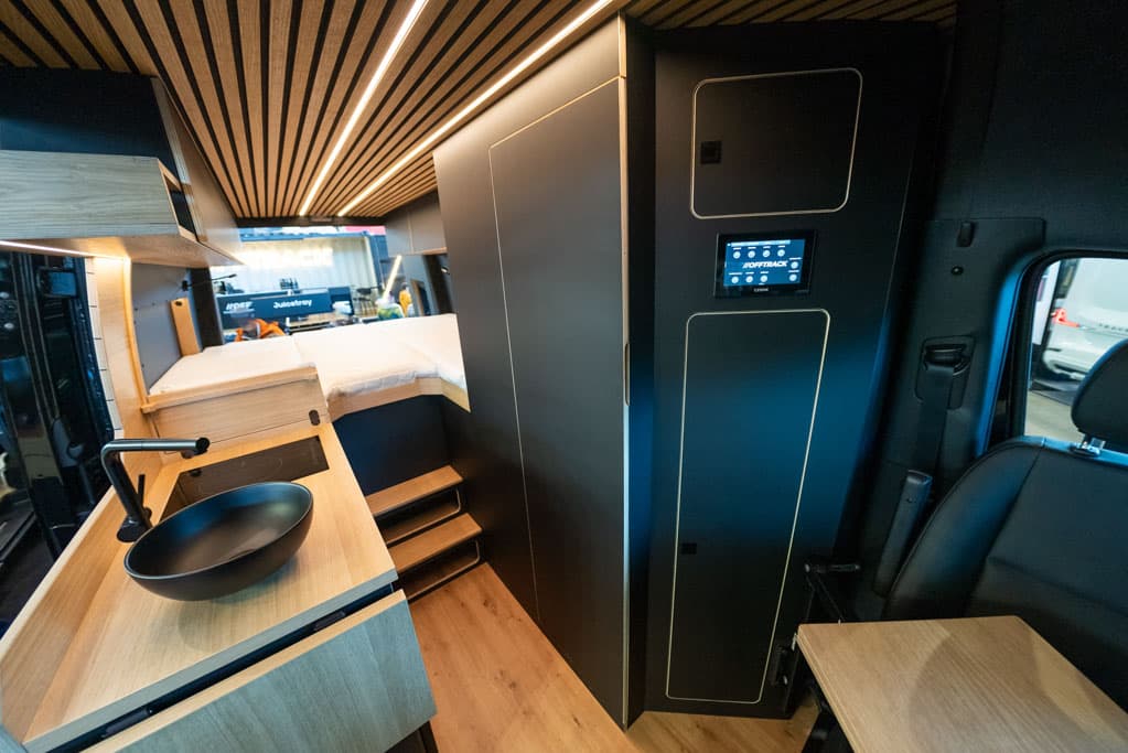 Isoliert wird der 4×4 Sprinter mit 19 Millimeter Armaflex, Offtrackcamper bietet den Offroader als gasfreien Camper mit Induktionskochfeld an. Designtechnisch zieht Offtrackcamper einige Trümpfe.