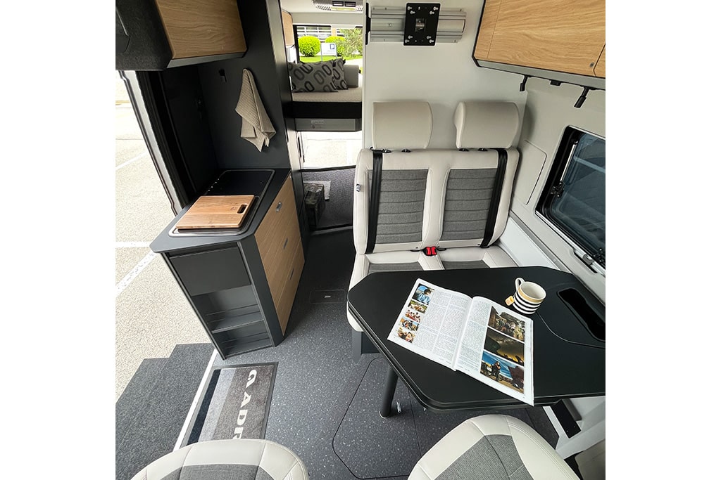 Die Fiat Ducato-Basis leistet bei ersterem 140 PS mit einer zulässigen Gesamtmasse des Vans von 3,5 Tonnen.