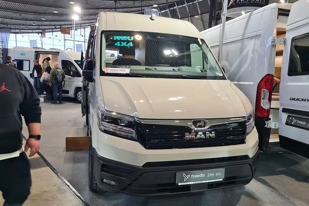 Freedo aus Polen zeigt auf der CMT den neuen Freedo M 599 4x4 auf MAN TGE mit Allradantrieb. Der erste 4x4-Campervan des Ausbauers eignet sich für zwei Reisende und hat ein zulässiges Gesamtgewicht von 3,5 Tonnen.