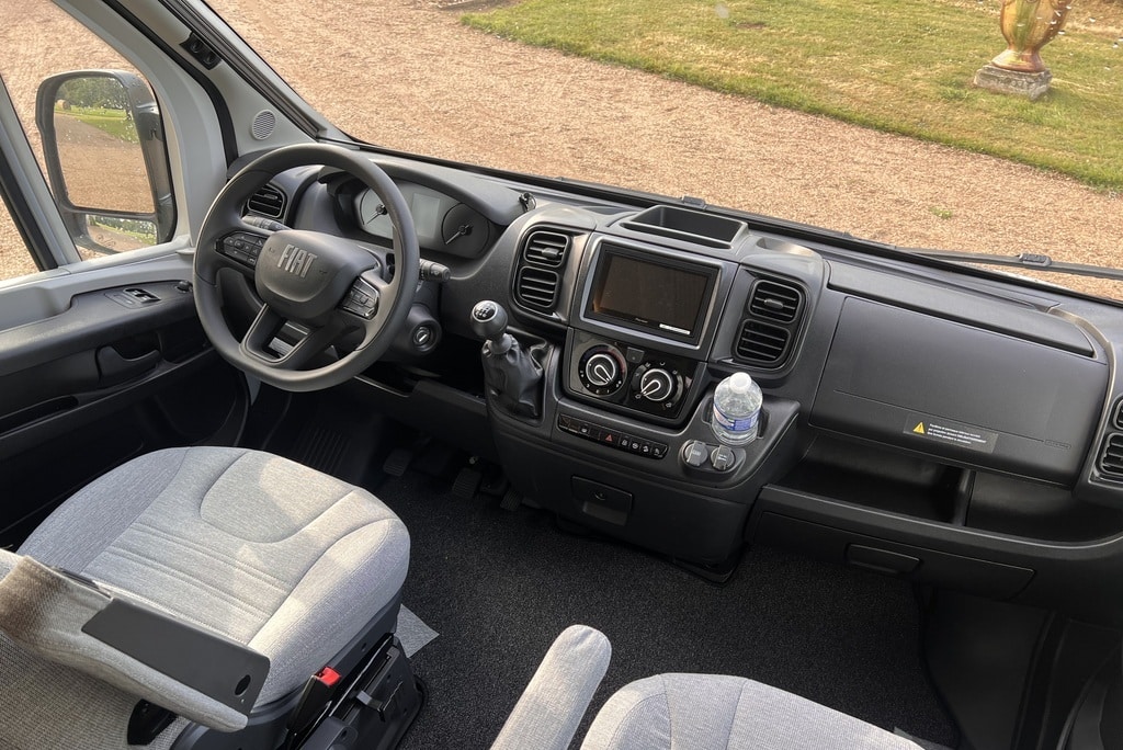 Der neue Pilote V 630 S baut, wie eingangs erwähnt, auf dem Fiat Ducato. Das Pressefahrzeug ist mit den serienmäßigen 16-Zoll-Stahlfelgen und dem 140-PS-Turbodiesel mit 6-Gang-Handschaltung ausgestattet, was grundsätzlich vollkommen ausreicht. Automatikgetriebe, 180-PS-Dieselmotor und Alufelgen werden gegen Aufpreis selbstverständlich verfügbar sein.