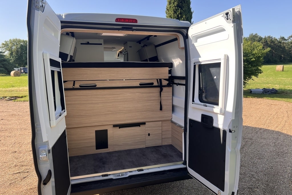 Der französische Hersteller Pilote hat für das Modelljahr 2026 ein Experiment gewagt: Man vereine die Vorteile eines Kastenwagens mit der großen Heckgarage eines ausgewachsenen Wohnmobils. Denn wer zu viert unterwegs ist, braucht auch jede Menge Platz fürs Gepäck. Deshalb nahmen die Entwickler den V 600 S, einen Ducato-Ausbau mit zwei übereinander angeordneten Doppelbetten, und verlängerten ihn um knapp 30 Zentimeter. Herausgekommen ist der Pilote V 630 S.