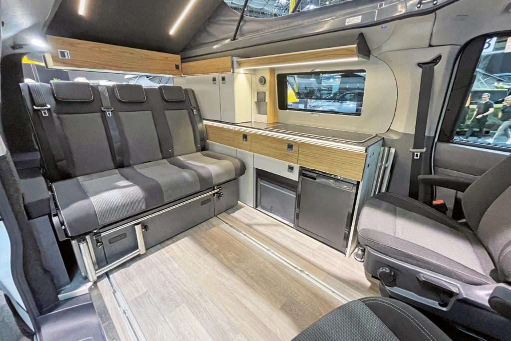 Der Innenraum zeigt sich in klassischem Grundriss mit verschiebbarer und herausnehmbarer Schlaf-Sitzbank.